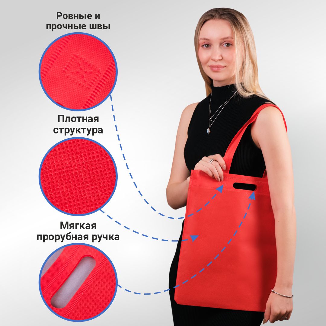 Многоразовый шоппер из нетканого материала с надежными пришивными ручками. Сумка из спанбонда приятная на ощупь, легкая и компактная.