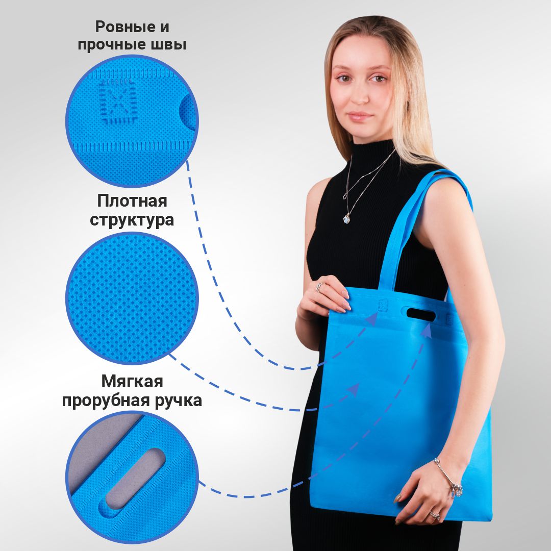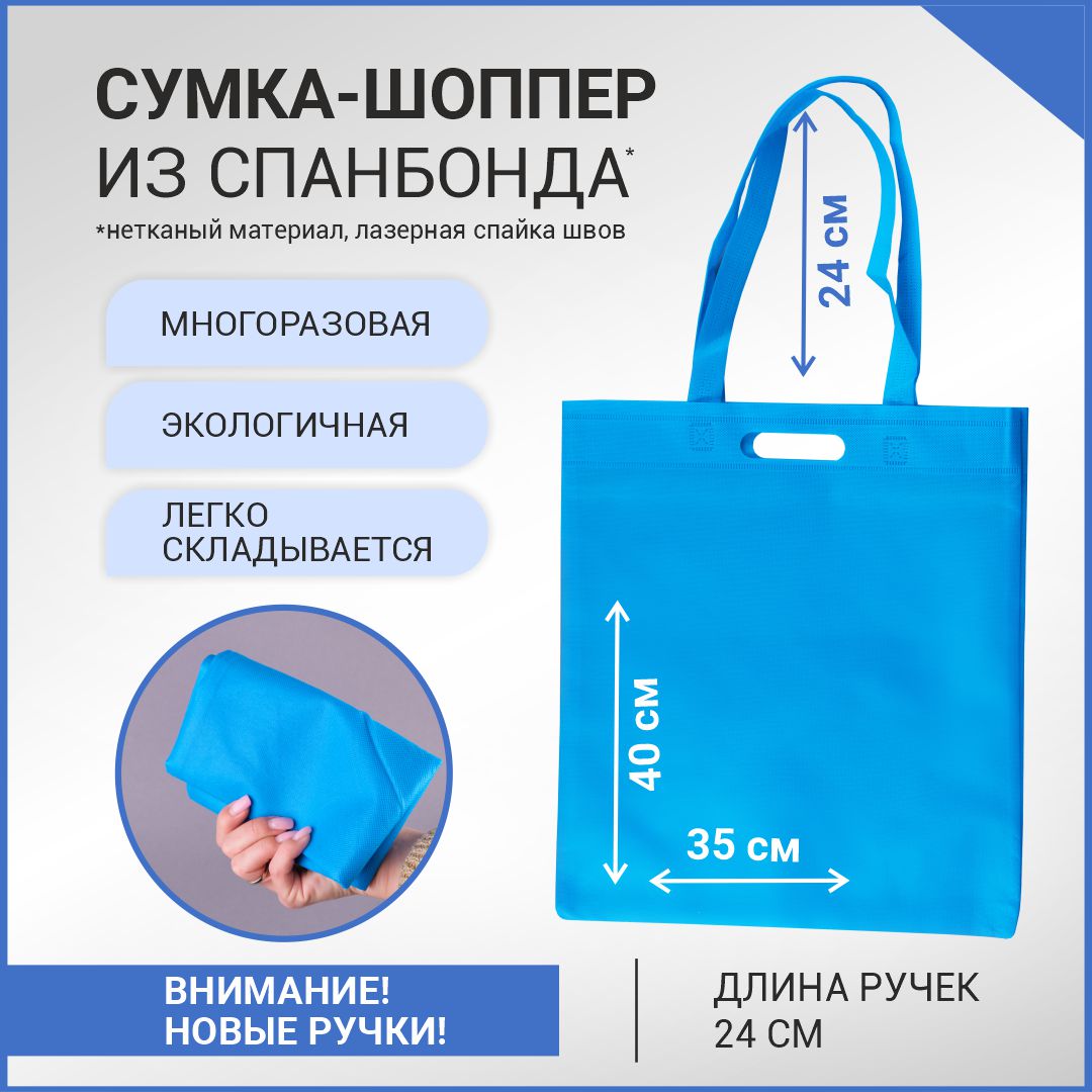 Сумка-шоппер из спанбонда с пришивными ручками 24 см, синяя, 35 х 40 см
