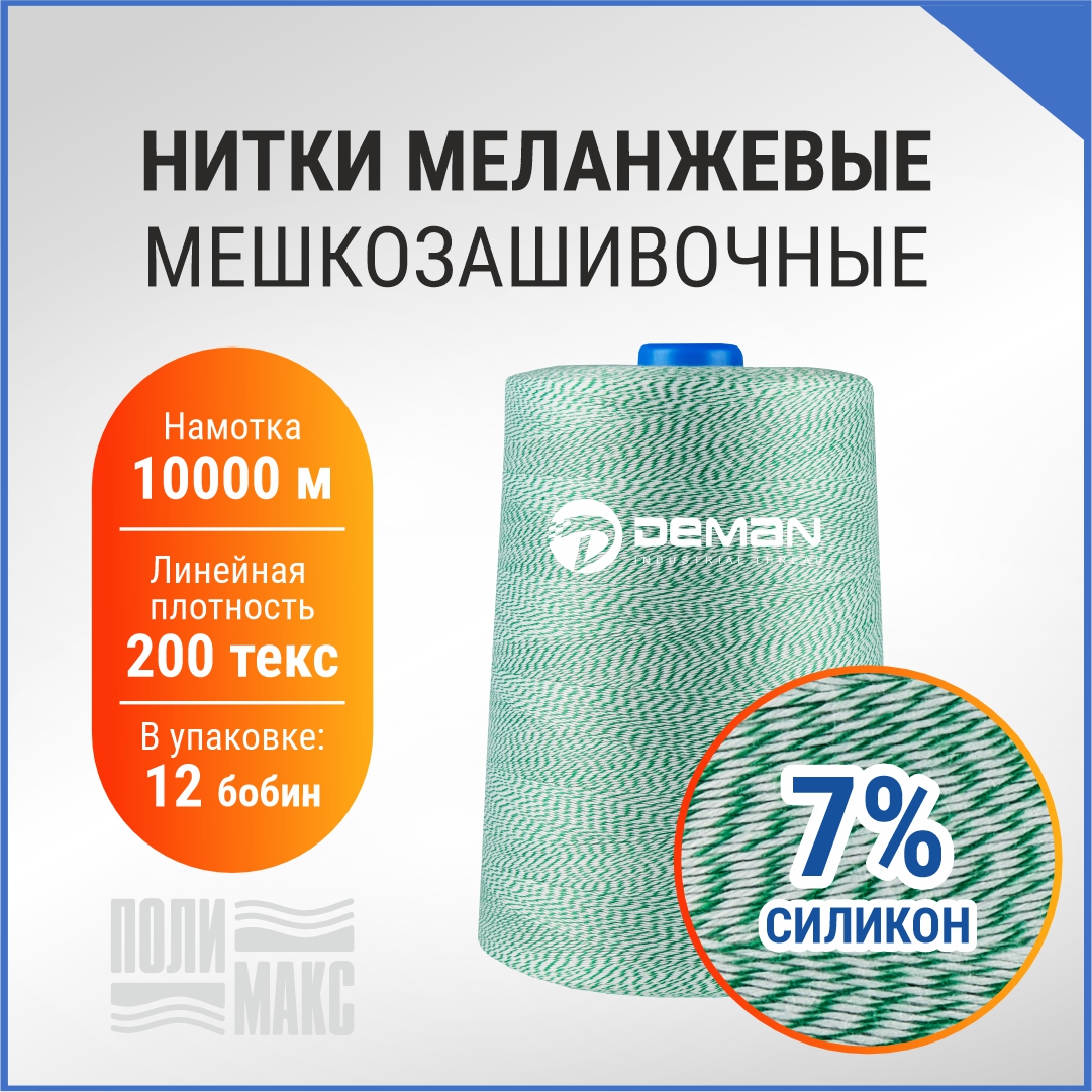 В компании «Полимакс» представлены бело-зеленые мешкозашивочные нити из 100% полиэстера с силиконовой пропиткой. Ими фиксируют горловины мешков для защиты содержимого от влаги, мусора, просыпания во время транспортировки.